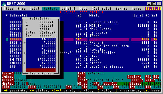 V celém programu je k dispozici kalkulačka, která kromě standardních výpočtů (sčítání, odčítání, násobení a dělení) umí zapsat právě zpracovaný výsledek do připraveného pole tabulky. Klávesami šipka nahoru - dolů a klávesami šipka doleva - doprava je možné během práce s kalkulačkou kdykoliv posunout okno kalkulačky všemi směry tak, aby třeba právě nezakrývala čísla, která chcete použít k výpočtu.