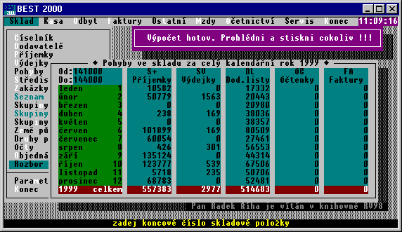 Výpočet pohybu zásob za celý rok