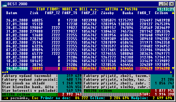 Základní obrazovka programu BEST 2000 spuštěného ve Windows 95 v okně