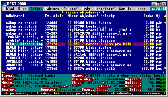 Evidence objednávek odběratelů, seznam dodacích listů, seznam dopravních dispozic, seznam dealerů, seznam regionů, seznam platebních karet, nastavení parametrů subsystému ODBYT.