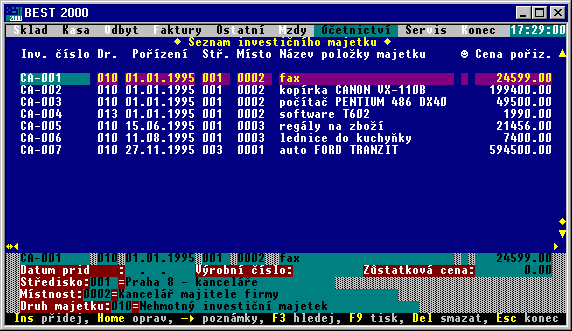 Celý program má snadné, intuitivní a smysluplné ovládání. Pokud například potřebujete něco vytisknout, stisknete klávesu F9. Pokud potřebujete ve zobrazené tabulce (databázi) něco vyhledat stisknete klávesu F3. Význam takových kláves (funkční klávesy) je v celém programu stejný.