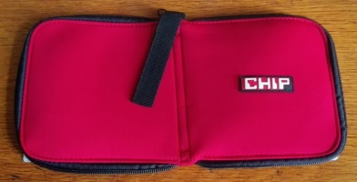 červený koženkový obal na 24 disků, zavírání na suchý zip