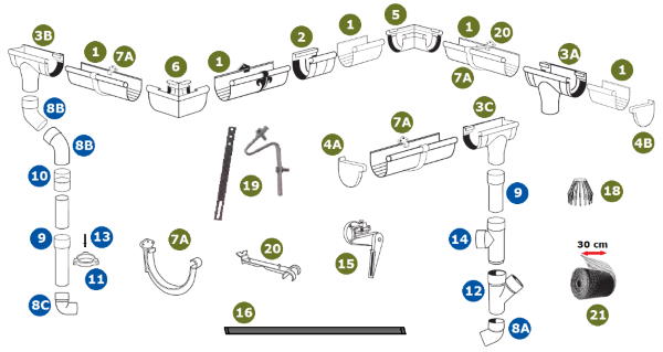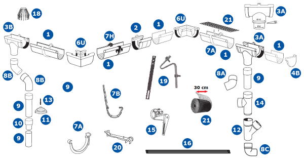 Záruční doba na poškození vlivem nekvalitního materiálu je 5 let od zakoupení plastového okapového systému. Záruka se nevztahuje na mechanické poškození.