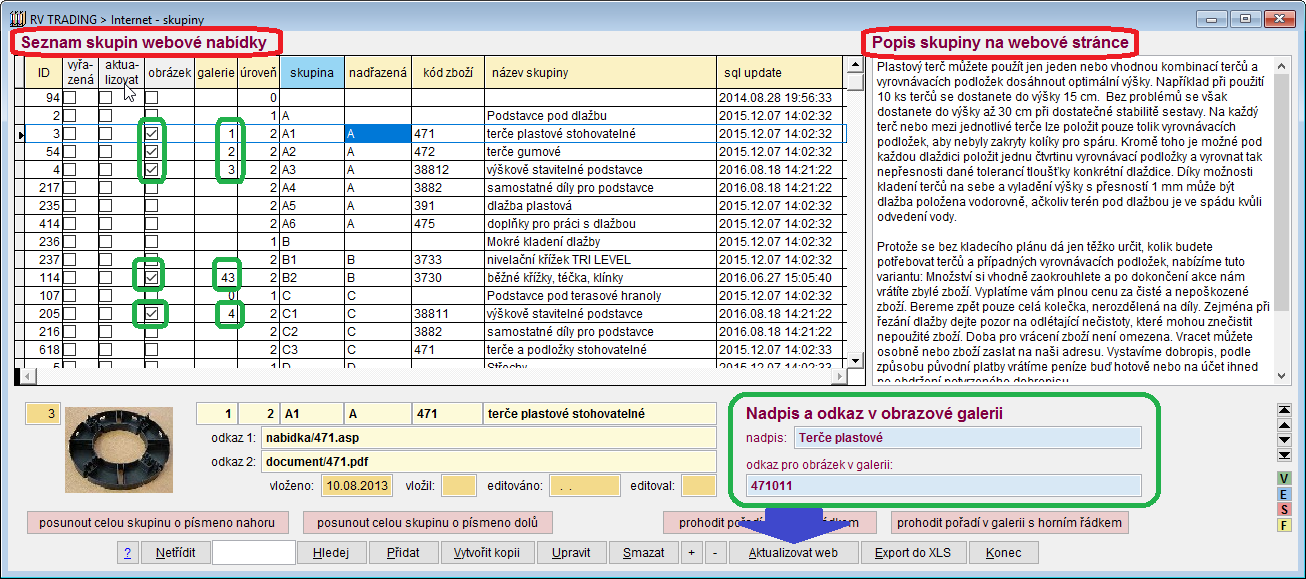 obrazová galerie určené obrázky položek pomohou na vašem webu k lepší orientaci ve vaší nabídce