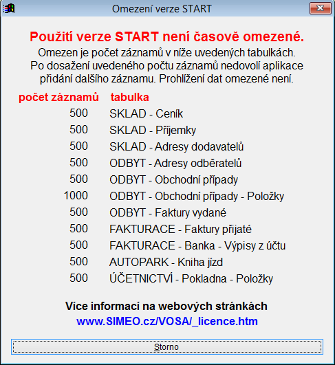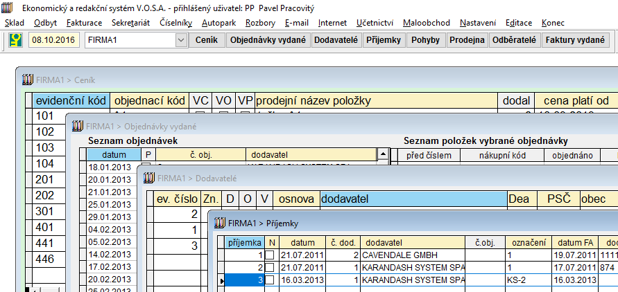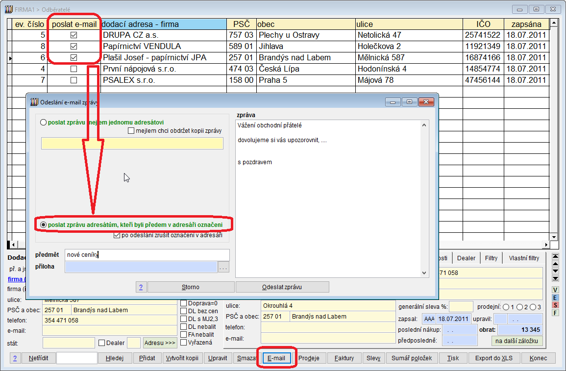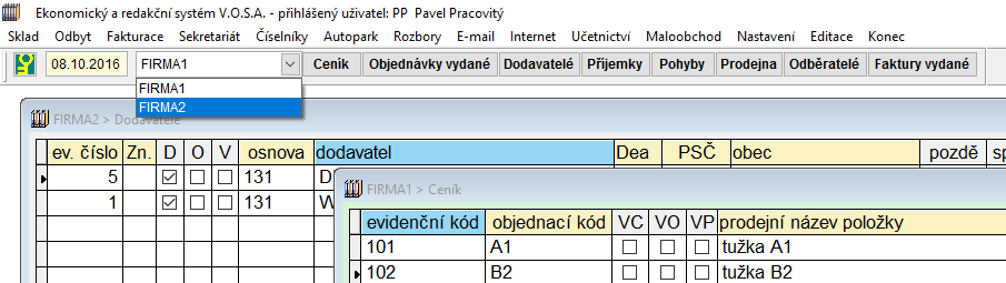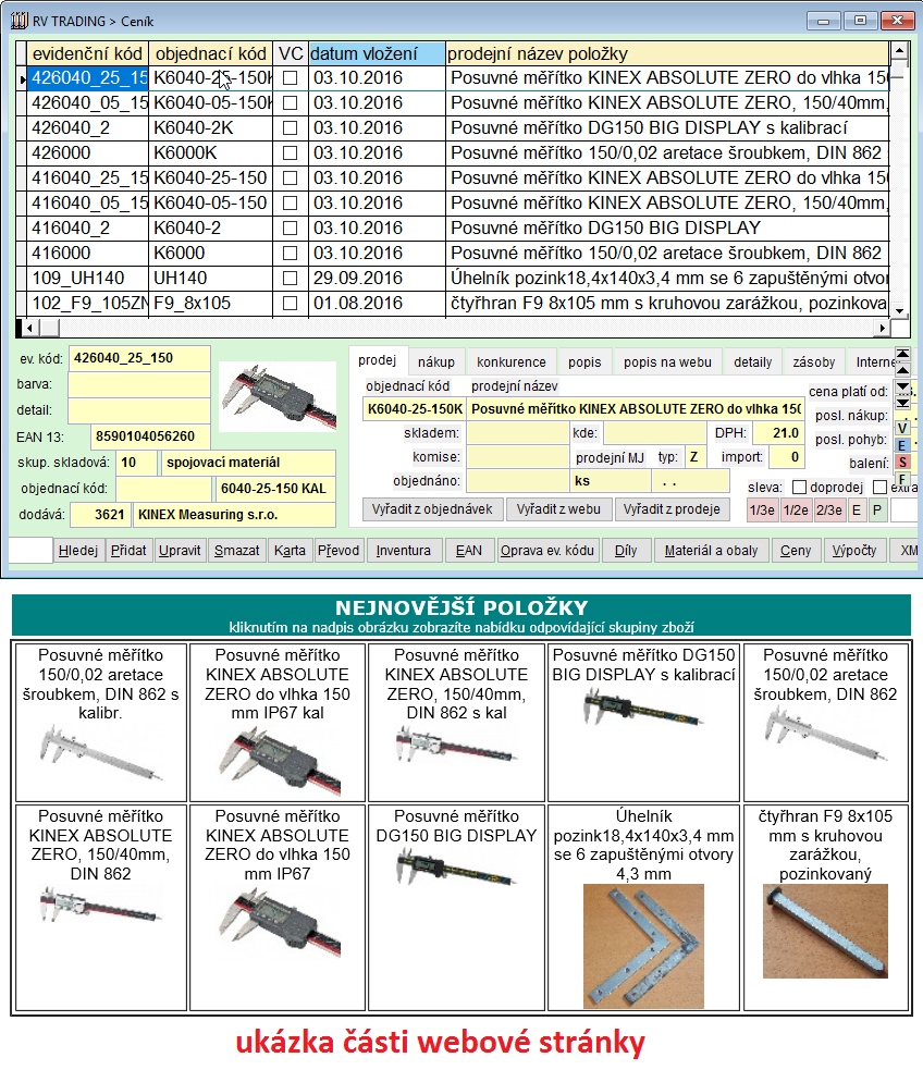 celý ceník na web volitelná funkce jednorázově uloží určené položky ceníku do jedné databáze na internetu i z více agend