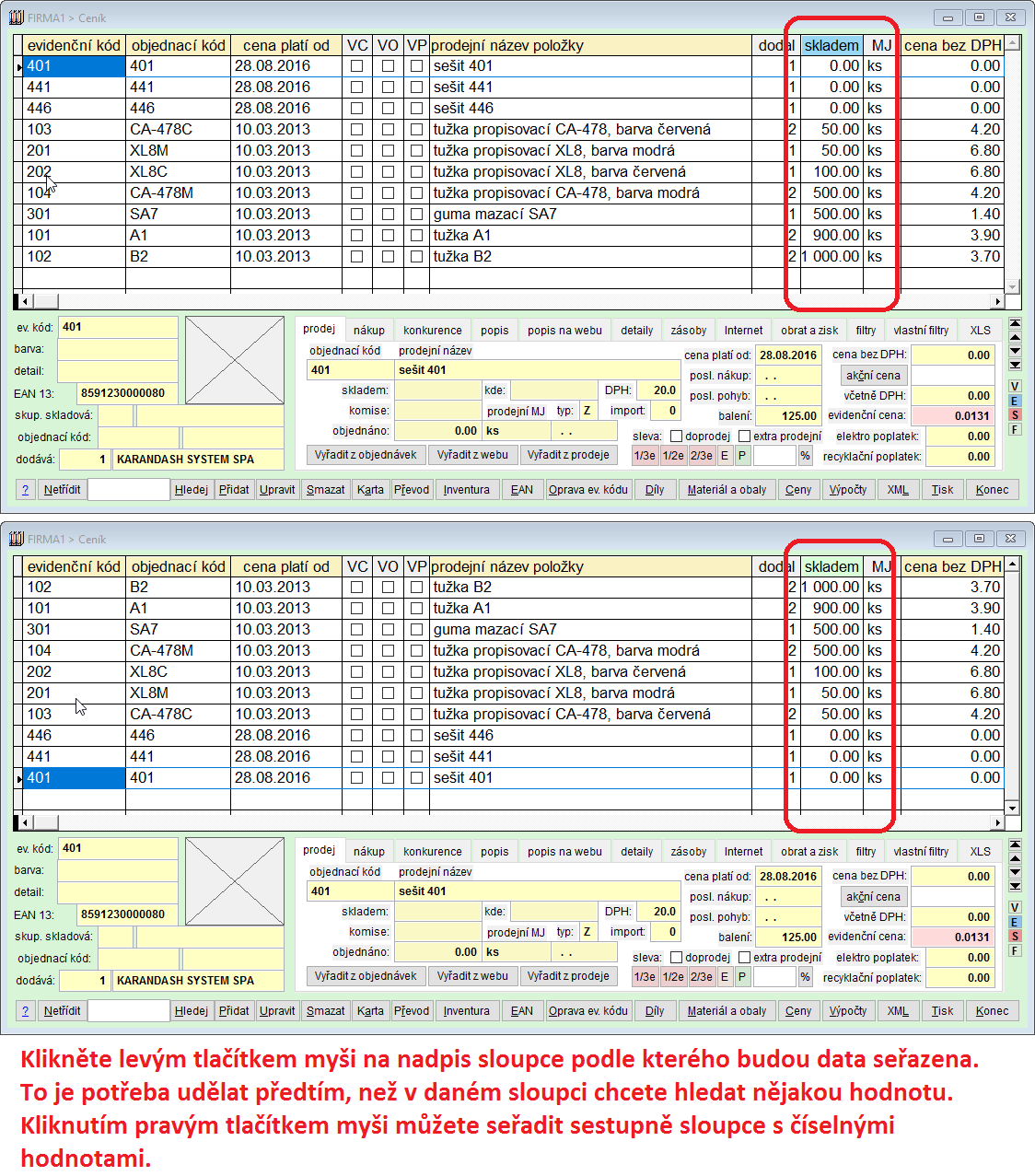 stav skladu okamžitý stav zásob v prodejních i evidenčních cenách