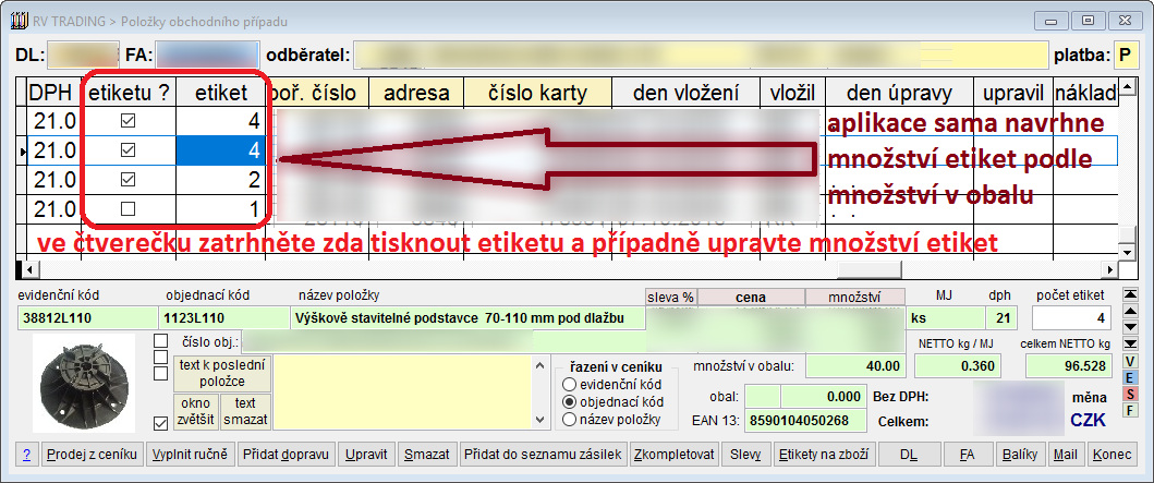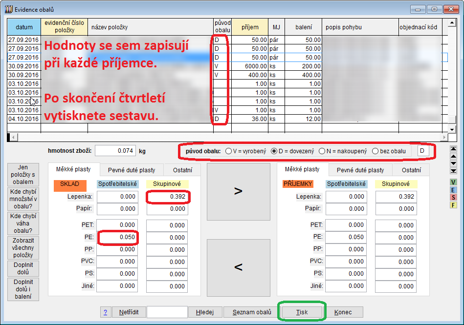 evidence obalů všechny druhy obchodních obalů s přesností na gramy se evidují při příjmu položky do skladu