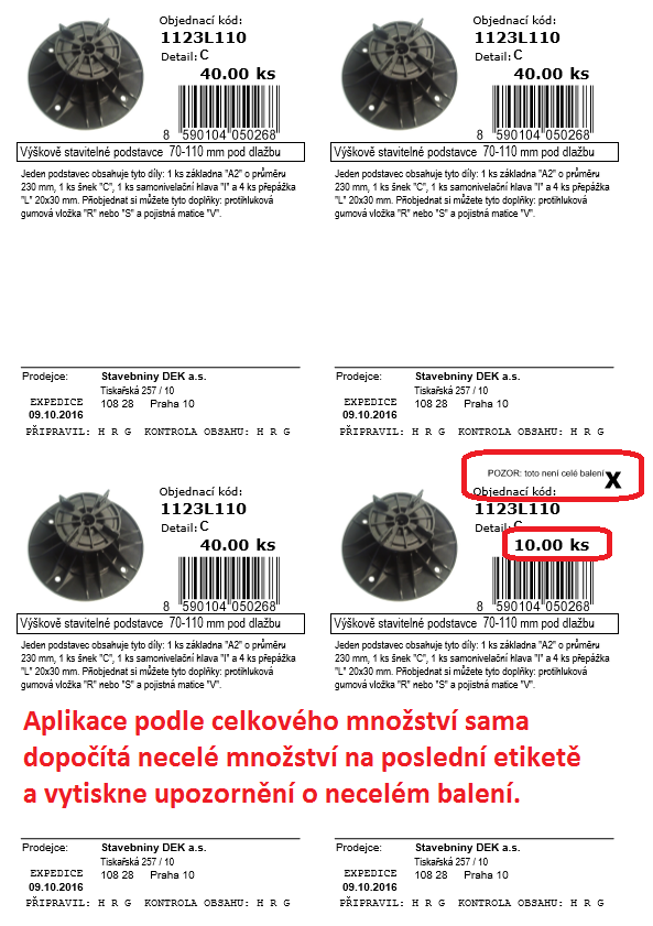 materiál a obaly automatické vyskladnění materiálu a obalů pro vyrobené položk