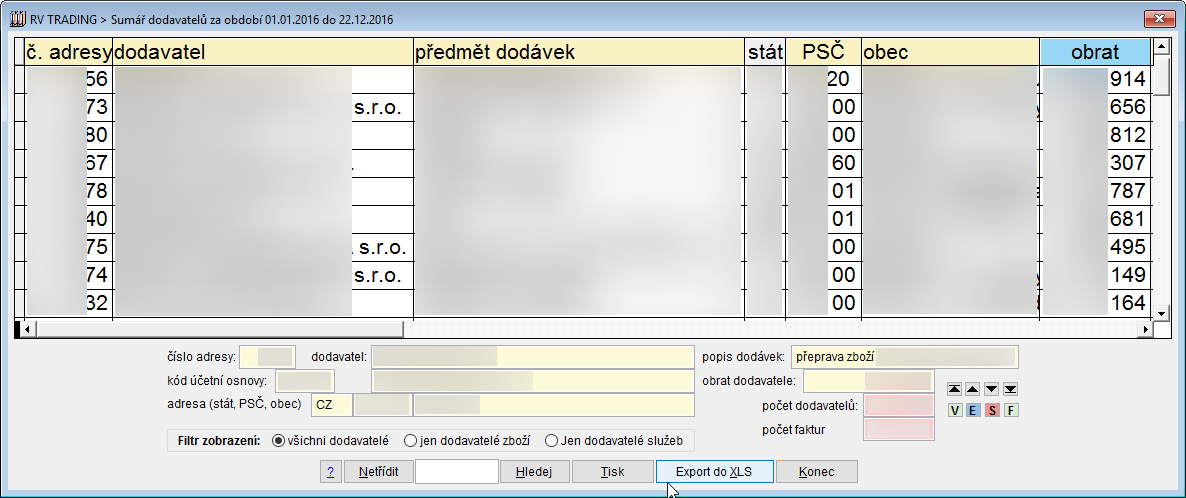obrat odběratele každému odběrateli lze určit 15 komodit a poté vypočítat obrat těchto komodit za posledních 14 roků