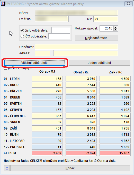 obrat a zisk můžete vypočítat obrat a zisk všech odběratelů nebo určeného odběratele dle dalších kritérií
