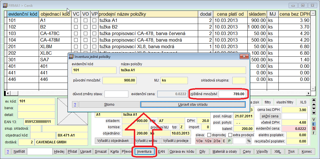 inventura položky na jedno kliknutí okamžitá inventura položky ve skladu