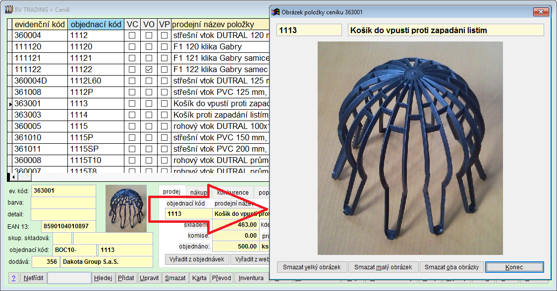 obrázek položek pro položky v ceníku i v prodejně se zobrazuje obrázek zboží a po kliknutí i větší obrázek