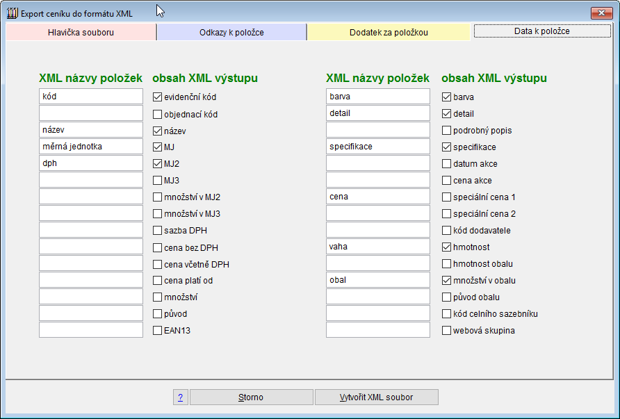výstup ceníku do XML je možné generovat soubor XML pro použití ceníku v jiných e-shopech